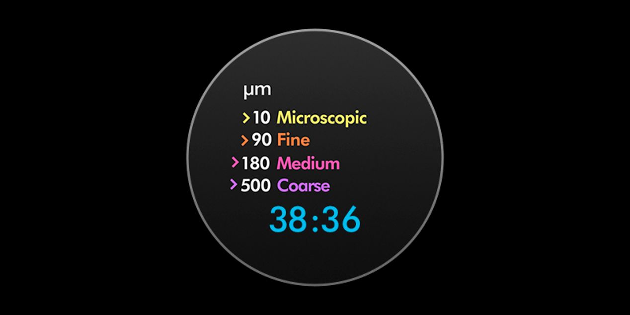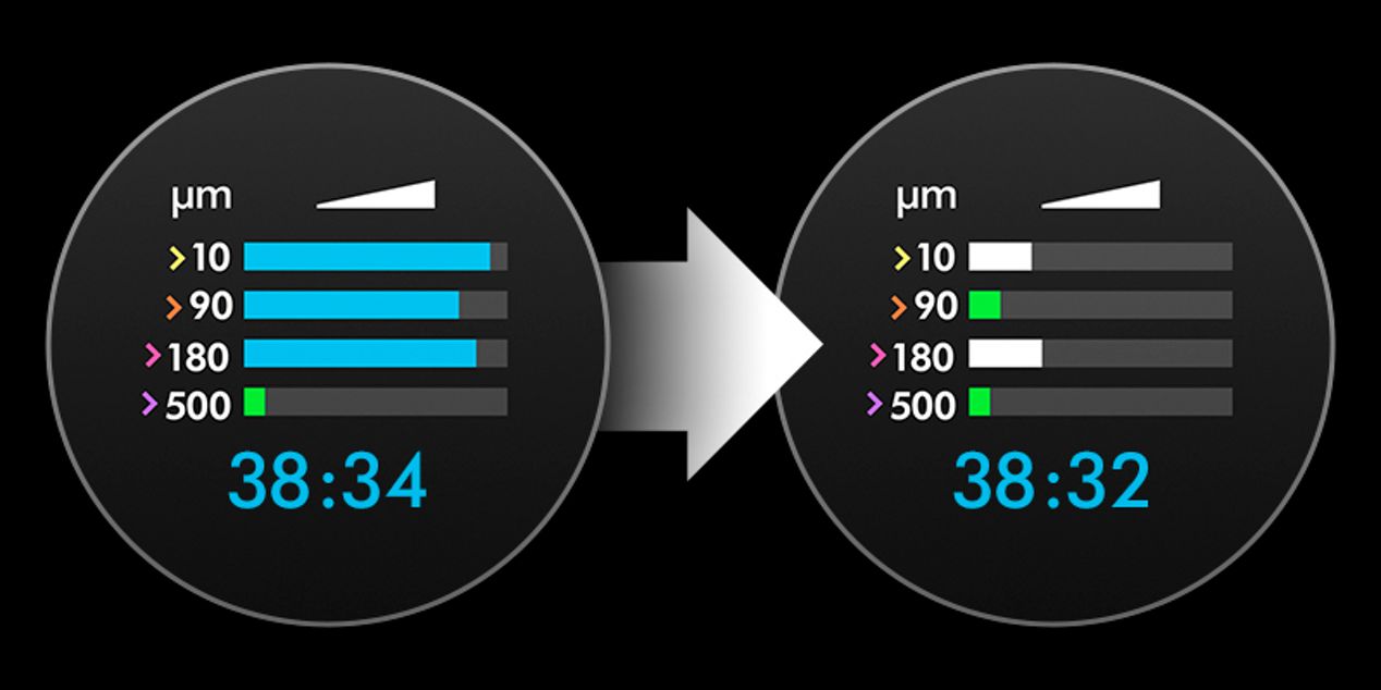 Das Display des Gen5detect™ kategorisiert die aufgesaugten Partikel je nach Größe.
